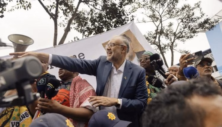 En arrivant dans le hall de l’aéroport, Ebrahim Rasool se fraie un chemin au milieu de la foule. Quelques centaines de personnes, principalement des militants de l’ANC, sont venues soutenir celui qui a été exclu des États-Unis pour avoir qualifié la politique américaine de « suprémaciste ».